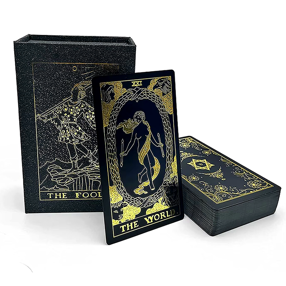78 jeux de tarot Oracle en feuille d'or personnalisés, cartes à jouer de divination en plastique, boîte de guide, papier imprimé, logo personnalisable