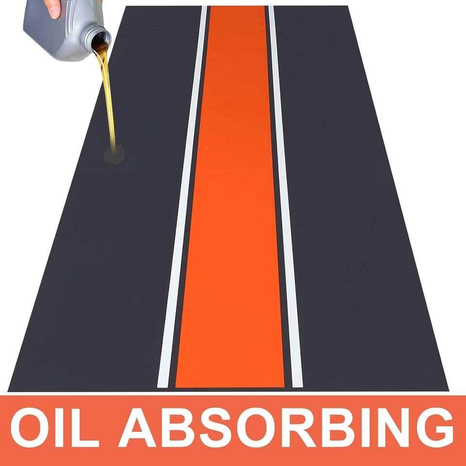 Tapis de moto en caoutchouc antidérapant absorbant l'huile lavable Miaoding 78x31 pouces, tapis de sol de garage, orange, usage commercial MD-R625