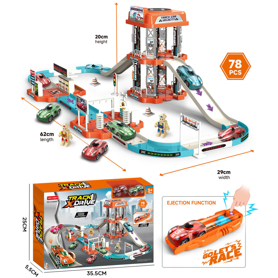 78PCS Educational Electric Slot DIY Assembly Railway Construction Slide Toy Parking Lot for Boys Girls Kids