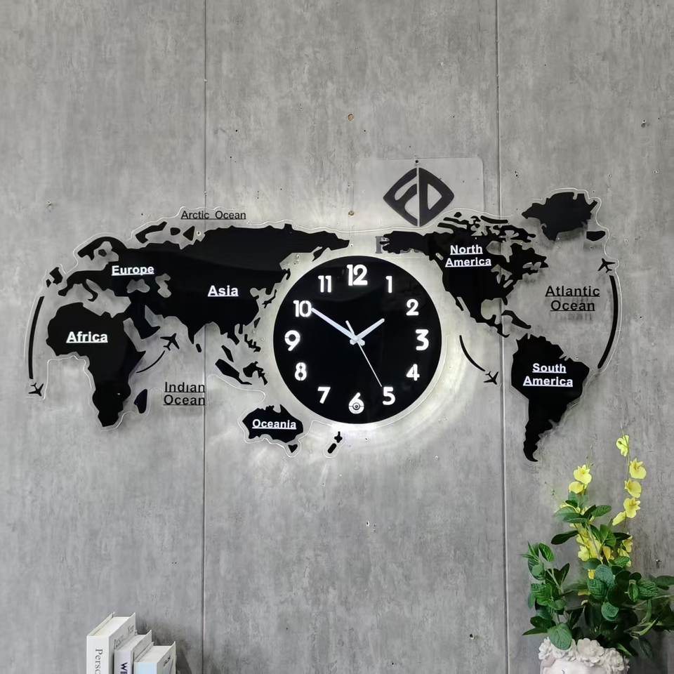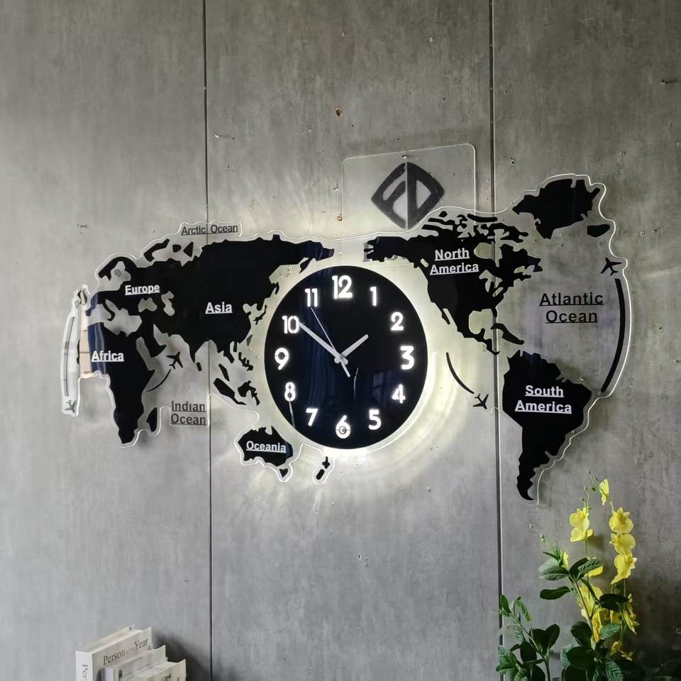 78X36.5 S avec veilleuse LED décor à la maison Art Design horloge murale silencieuse montre peut ajouter votre pays sur la carte du monde livraison directe DDP