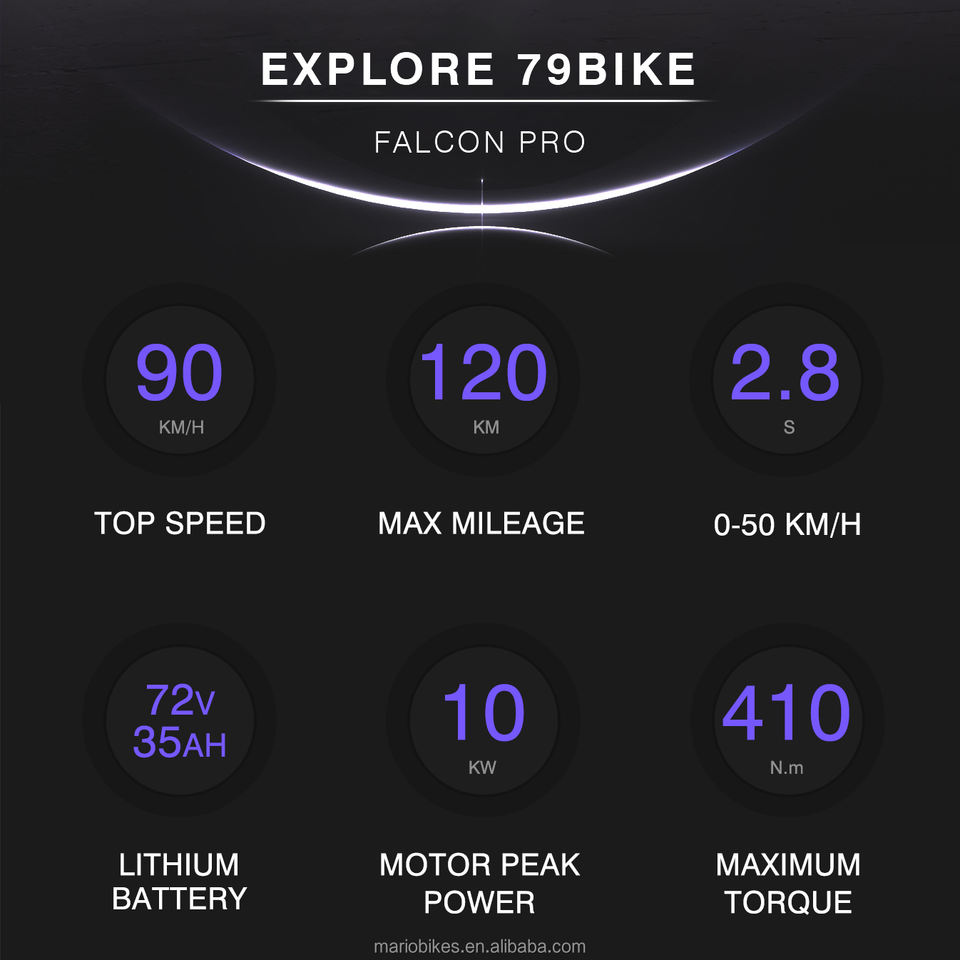 Moto électrique 79 Bike Falcon PRO 72v 10000w 410N.m 90KM/h Batterie 35AH Système de freinage hydraulique Enduro Ebike Bike Sport