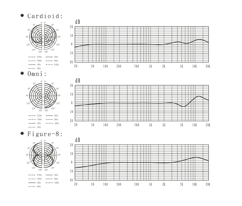 Motif polaire:Omnidirectionnelles, Cardioïde, Figure-8