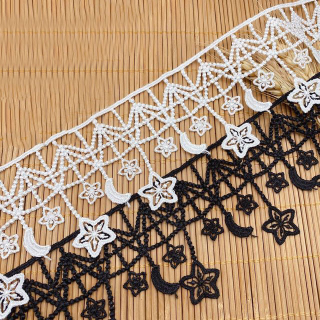 Tissus brodés en dentelle, 5/7CM de largeur, accessoires de vêtement à la mode, matériel à coudre pour robes ajourées, garniture étoiles, lait, lune,