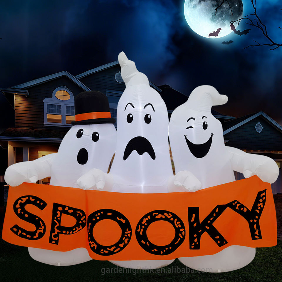 Product name:7FT Wide LED Triple Ghosts Inflatable with SPOOKY Sign
