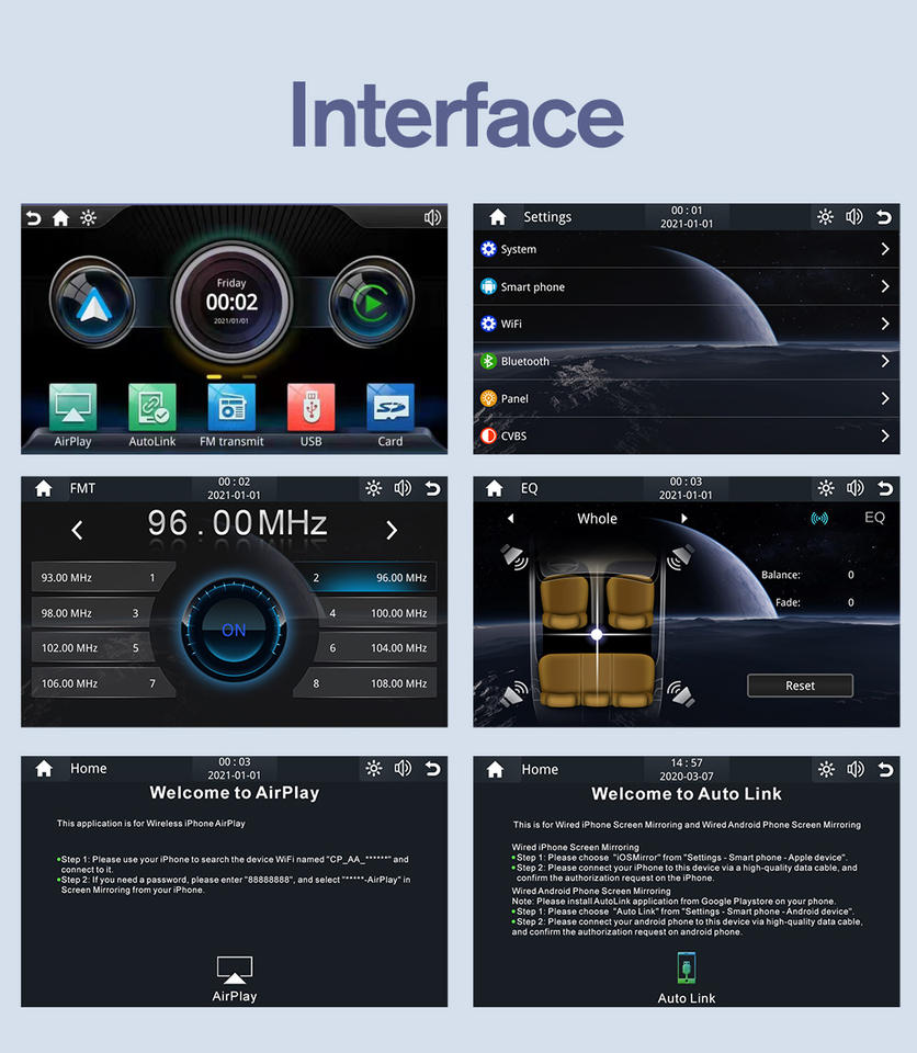 GPS, Stéréo, SANS MAINS, CarPlay, Lien de miroir, Android auto, Gestionnaire de fichiers
