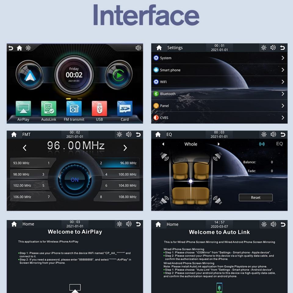 Interface:USB/Carte TF/Audio/CD