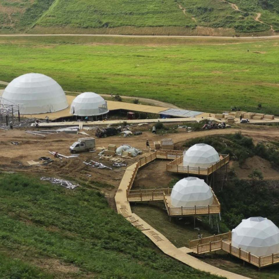 Tente de dôme d'igloo géodésique de glamping de luxe de 7M avec la salle de bains de fenêtre en verre