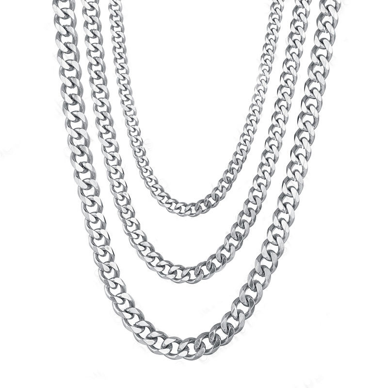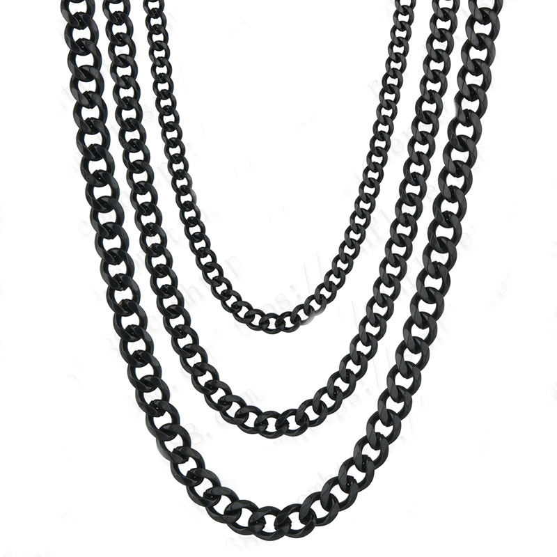 Chaîne cubaine noire en acier inoxydable de 7 mm pour homme