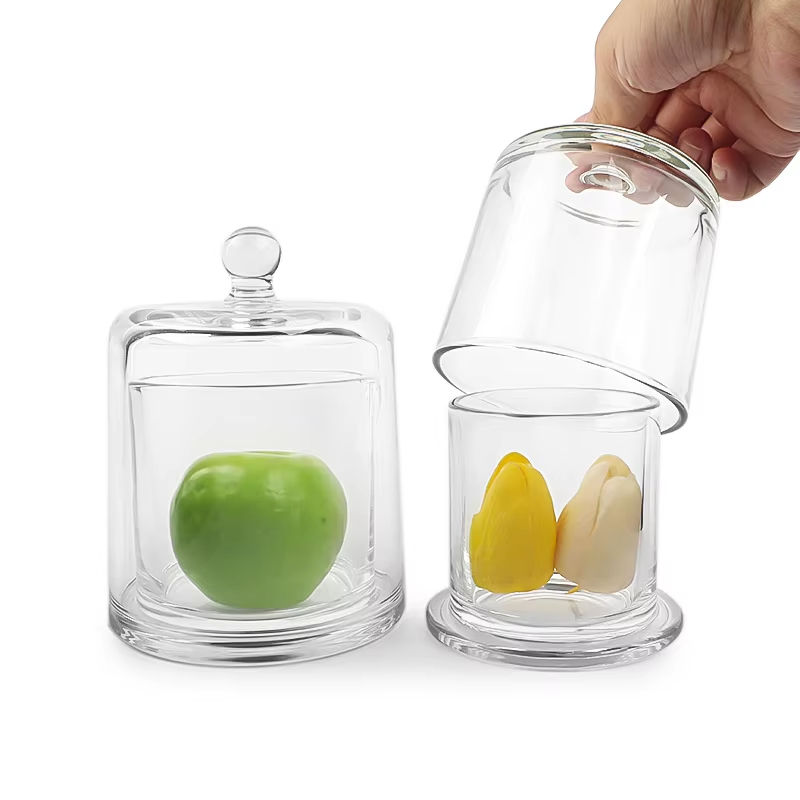 Couvercle décoratif de pot de bougie en verre transparent de 7OZ pour le pot de cloche de pièce maîtresse d'affichage avec le cas de cloche de dôme pour l'affichage de stockage de bougie