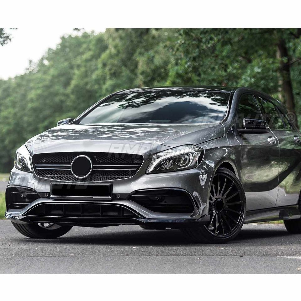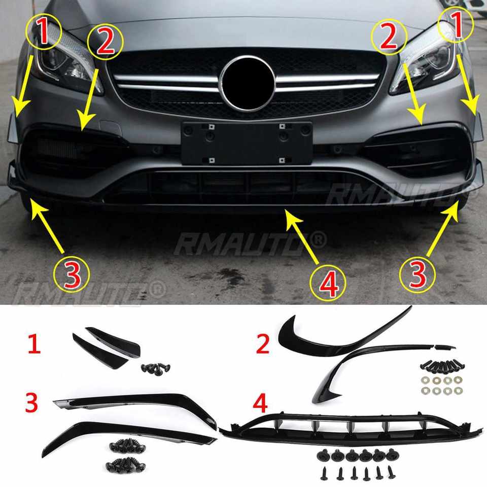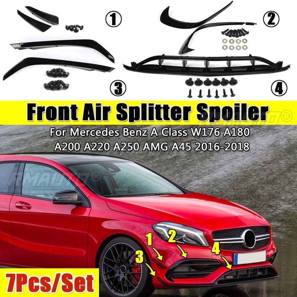 Kit de 7 pièces : Spoiler avant avec canards latéraux et jupes pour Mercedes-Benz W176 A180 A200 A250 A45 AMG 2016 2017 2018