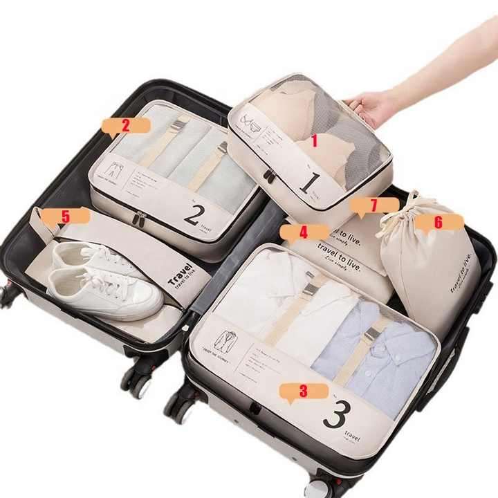 7 pièces sac de rangement de voyage Portable organisateur de bagages multifonctionnel vêtements chaussures articles de toilette sac de rangement sac de rangement à fermeture éclair