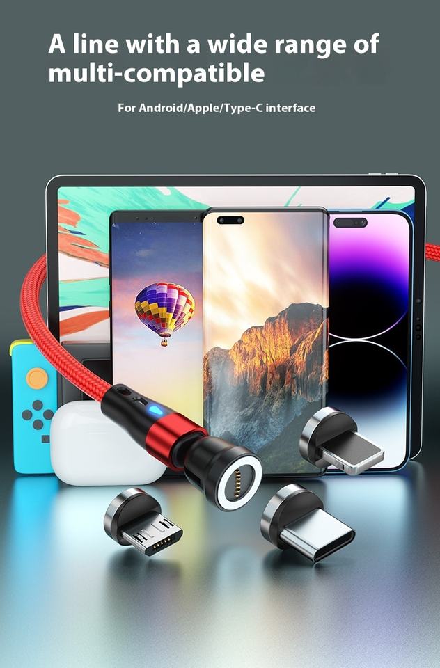 7PIN Usb Pd 20w 3A Charge rapide Attraction magnétique trois en un Câble de données magnétique rotatif 3 en 1 à 540 degrés