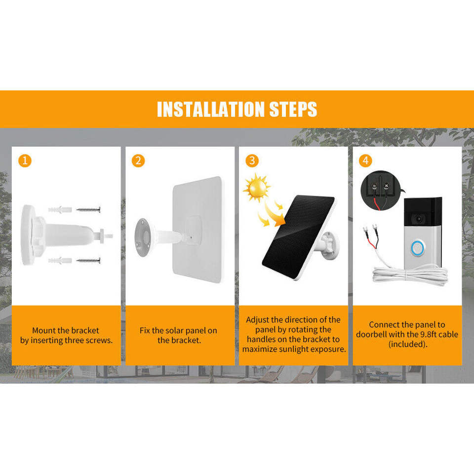 Panneau solaire 7W 5V avec câble de 10 pieds compatible avec Ring Video Doorbell 3/3+/4E, etc.
