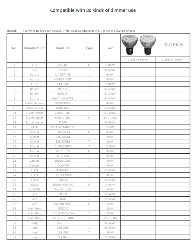 2700K/3000K/4000KLa température de couleur (le TDC)