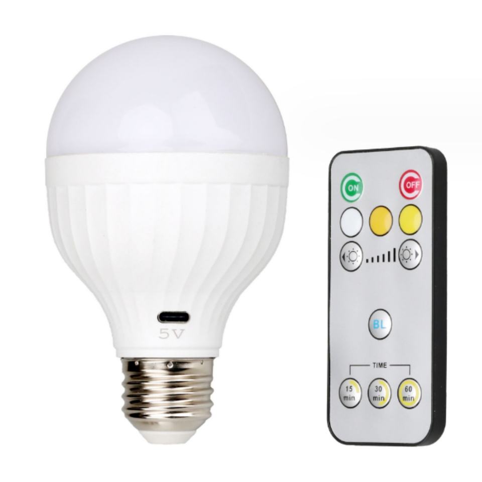 Ampoule LED rechargeable USB-C 7W avec télécommande, batterie 2600mAh, 5V, pour pannes de courant et situations d'urgence