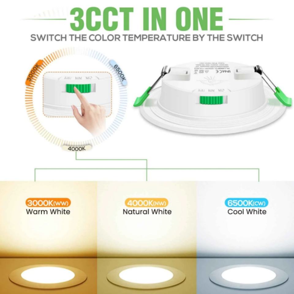 Plafonnier LED encastré ultra-plat 7W, 3000K/4000K/6500K CCT, intensité variable, 1 pièce