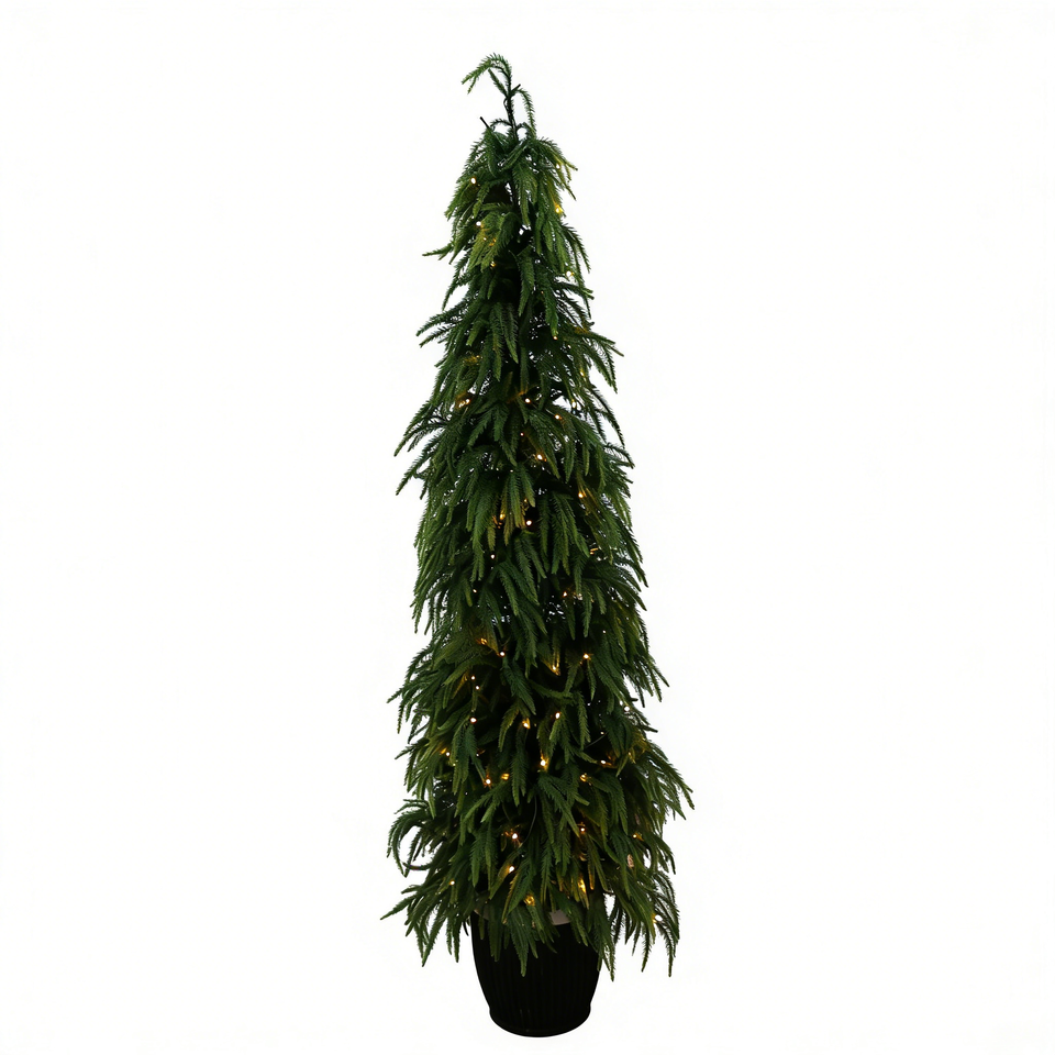 Sapin de Noël artificiel pré-éclairé de 2,1 m en PE à 100 %, sapin de type sapin de ferme étroit avec lumières LED chaudes, parfait pour la décoration intérieure des fêtes