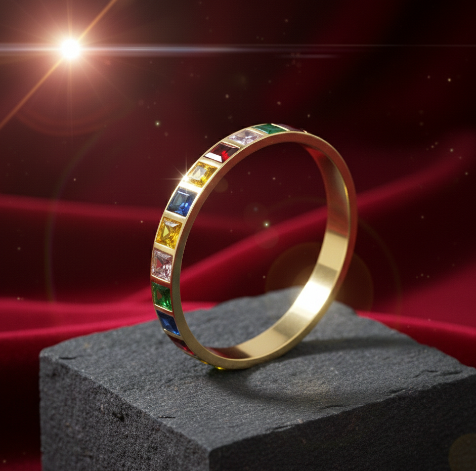 Bracelet élégant pour femme en argent 925 plaqué or 18 carats avec pierres multicolores carrées de 7 mm, 20 grammes, bracelet en pierres précieuses colorées