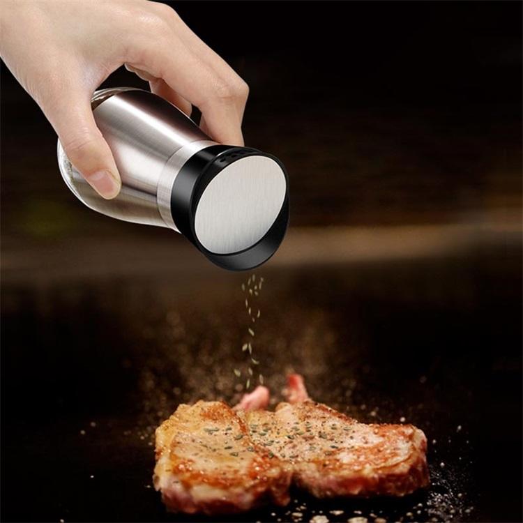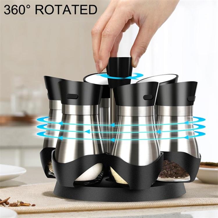 7 pièces/lot, pots à épices rotatifs, acier inoxydable, verre, boîtes à condiments, flacons à assaisonnement, récipients à sauce, sel, sucre, poudre
