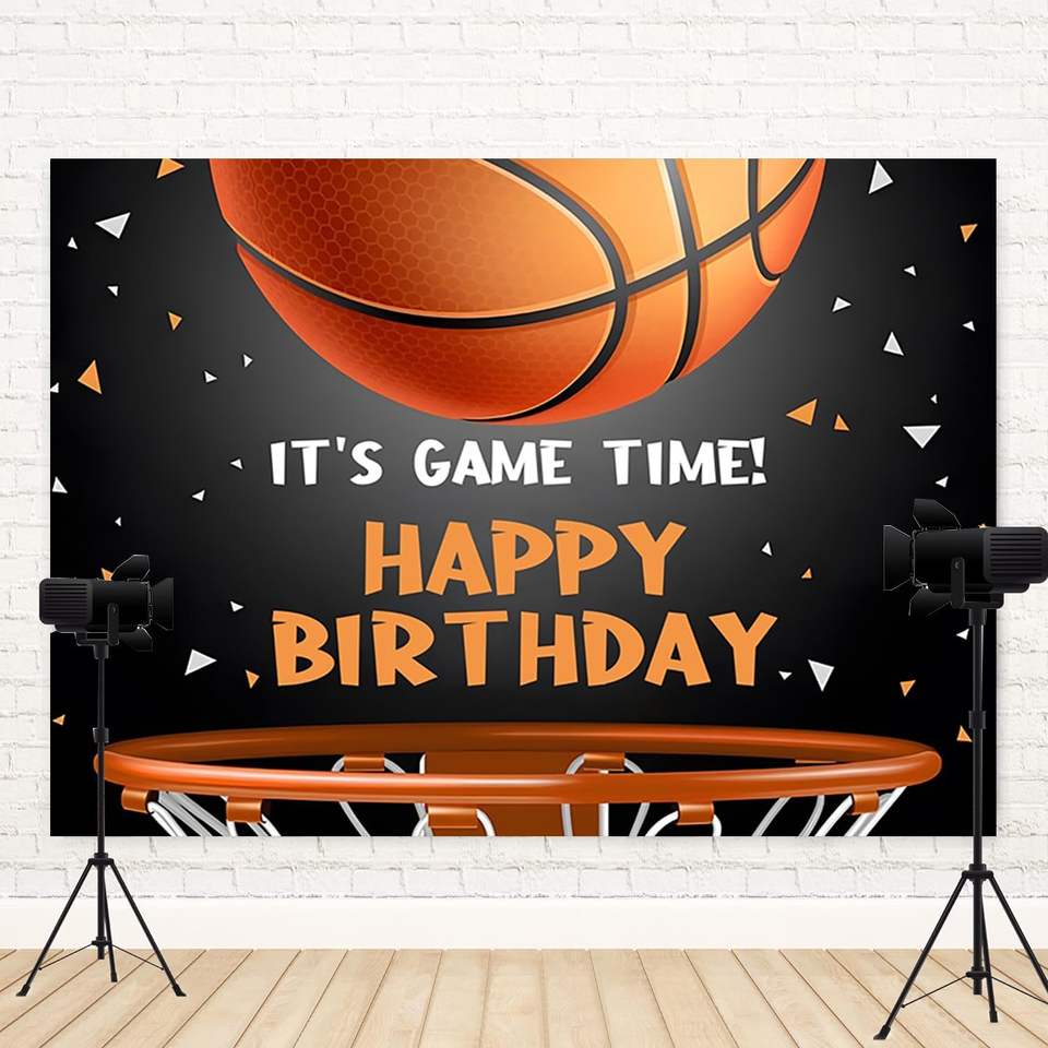 7x5ft 'It's Game Time' Basketball Themed Birthday Backdrop Custom Photo Booth Props Party Decor in Stock
