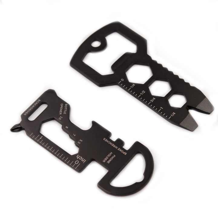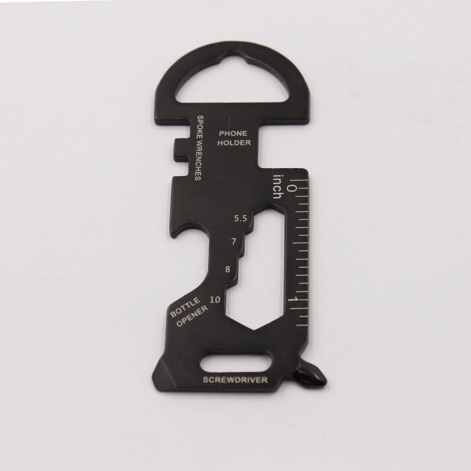 Porte-clés en acier inoxydable 8 en 1 pour vélo, outil de poche laser, règle, clé, tournevis, coupe-boîte, ouvre-bouteille, tendance