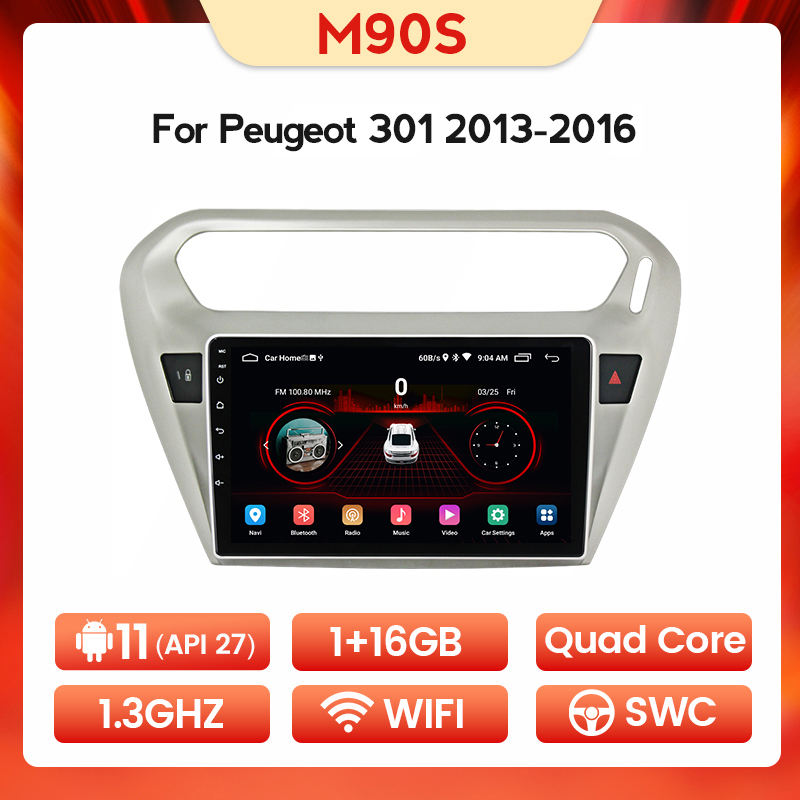 8 + 128G Android 11 IPS DSP API 30 Voiture Vidéo Pour Peugeot 301 Citroen Elysee 2014 - 2016 RDS AM FM de voiture système multimédia 4G LTE BT