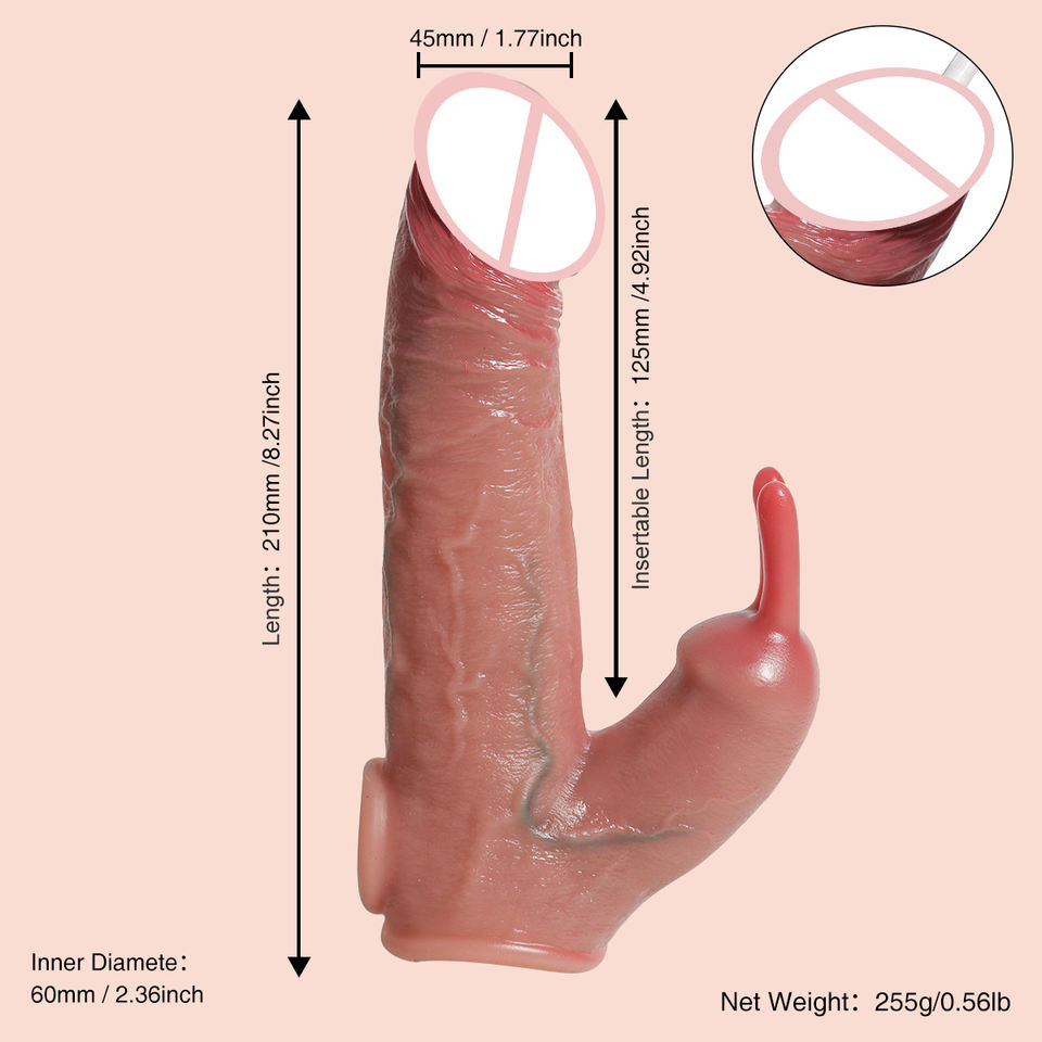 Manchon de pénis réutilisable réaliste brun de 8,26 pouces avec petite langue, adapté à l'agrandissement et à l'épaississement du pénis masculin, jouets sexuels
