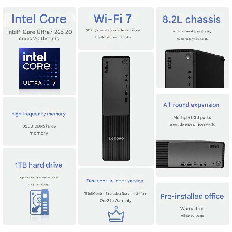 Nouvel ordinateur de bureau commercial SFF 8,2 L, Intel Core Ultra 7, Windows 10, Mini PC professionnel, WiFi 6, double stockage extensible