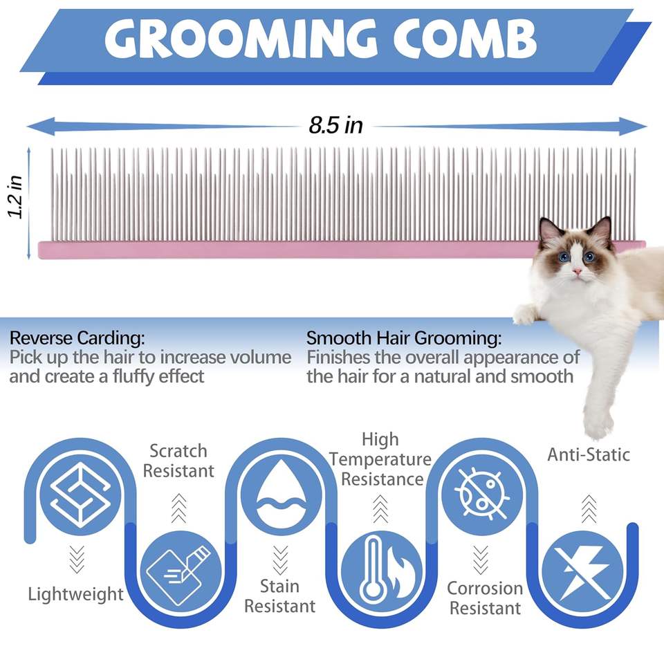 Peigne à double dents pour animaux de compagnie de 8,5 pouces, style simple, portable, pour démêler les poils des chats et des chiens à poils longs d'intérieur