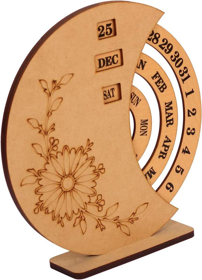 Calendrier perpétuel de 8.5 pouces Décor de maison et de bureau en bois Calendrier de bureau perpétuel à disque en bois vintage