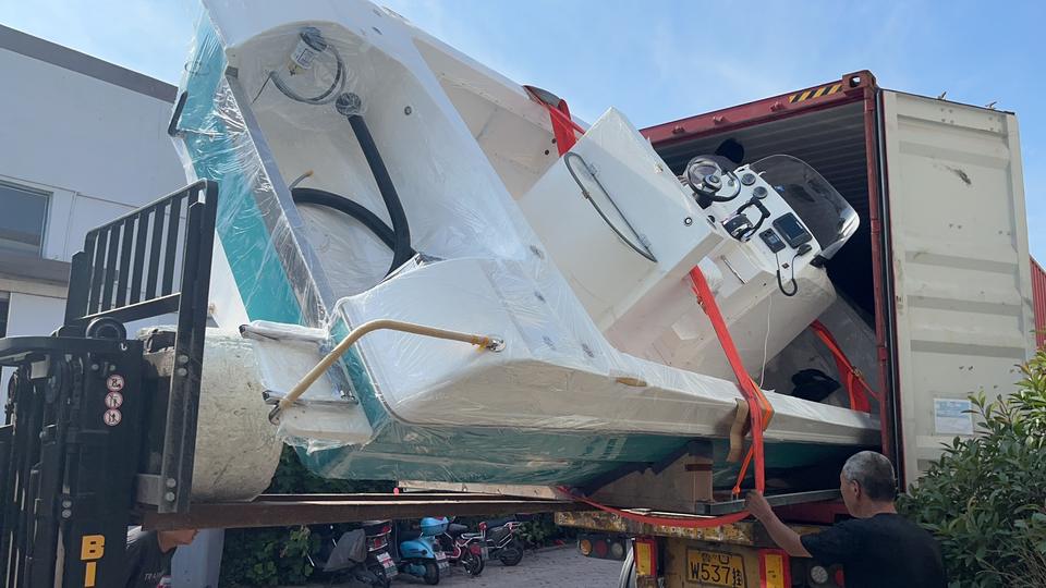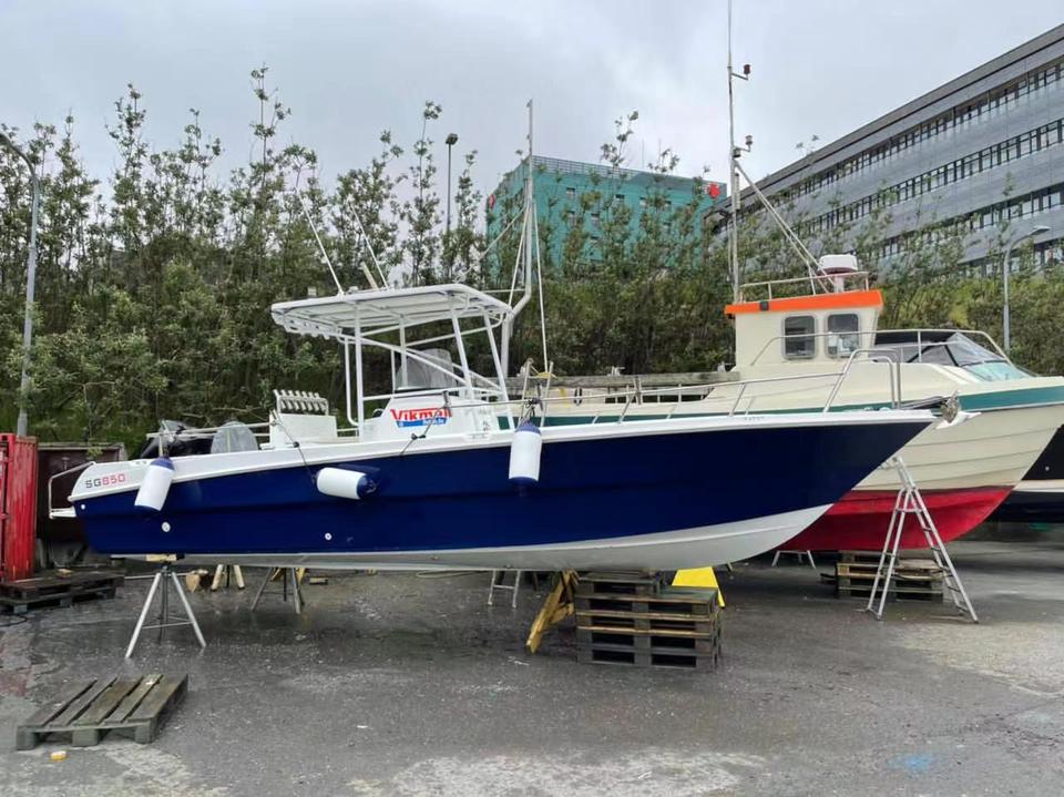 Bateau de pêche à console centrale avec moteur hors-bord en fibre de verre de 8,5 m