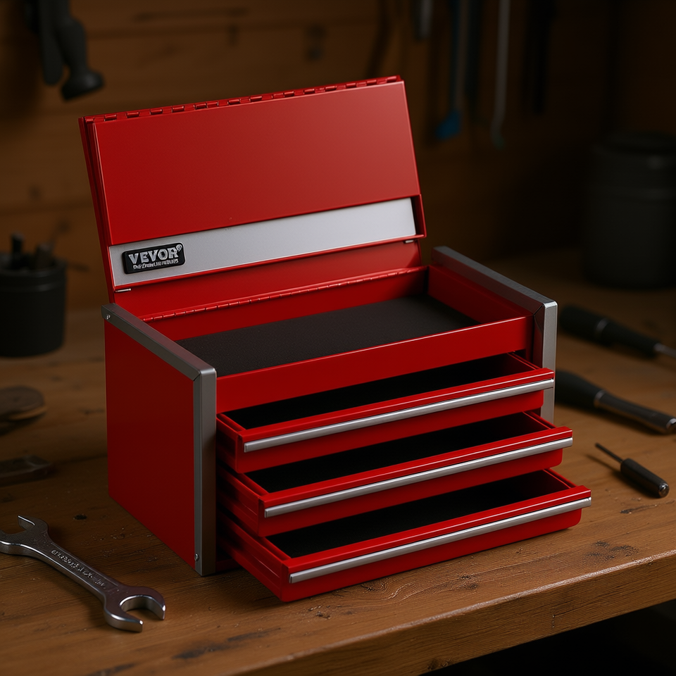 Boîte à outils en métal de 8,6 pouces, 3 tiroirs, organisateur d'outils portable, rangement d'atelier, rouge