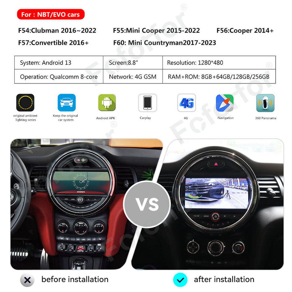 8.8 "Android 13 pour BMW nouveau MINI autoradio pour NBT/EVO Auto vidéo GPS Navigation lecteur multimédia unité principale