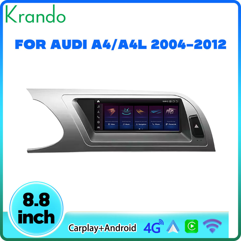 Unité principale Android 8,8 pouces pour Audi A4 A4L 2004-2012 Lecteur CD Autoradio Multimédia Navigation Radio Stéréo GPS CarPlay sans fil 4G