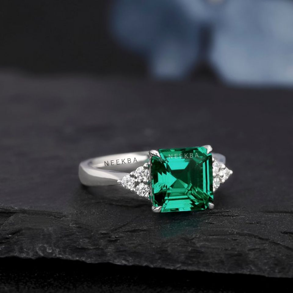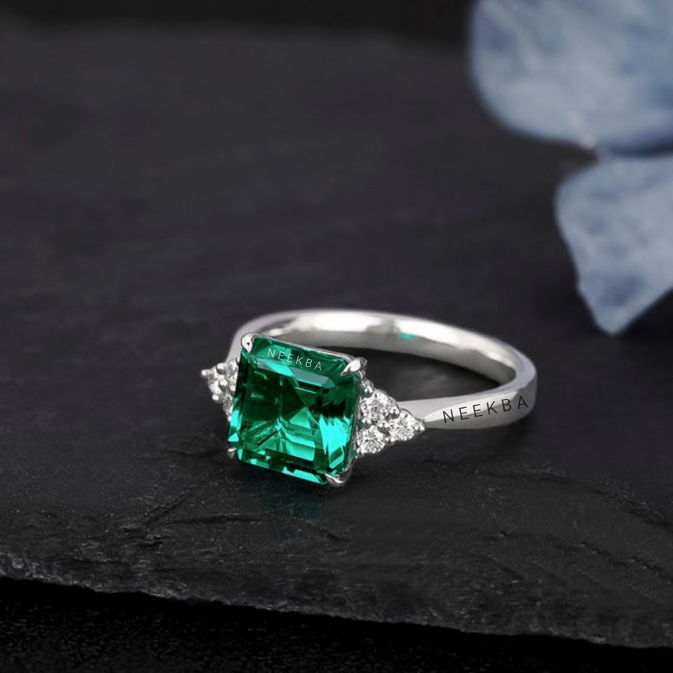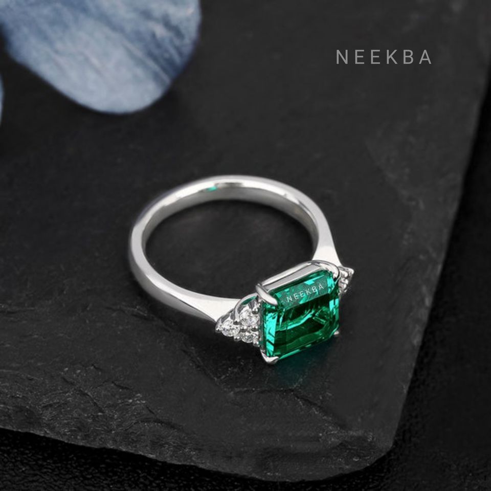 8*8mm Carré Émeraude Cut Lab Grown Emerald 10K Solid Gold Ring Emerald Handmade Gold Ring avec Metal Tone/Purity Change Options