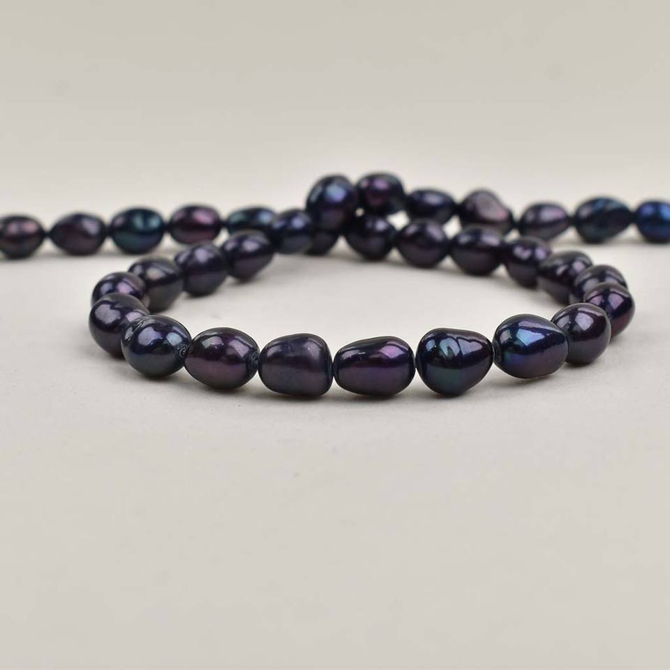 8-9mm Natural Freshwater Baroque Shaped Pearl Necklace Loose Black Pearl for Jewelry DIY Semi-Finished with Straight Hole