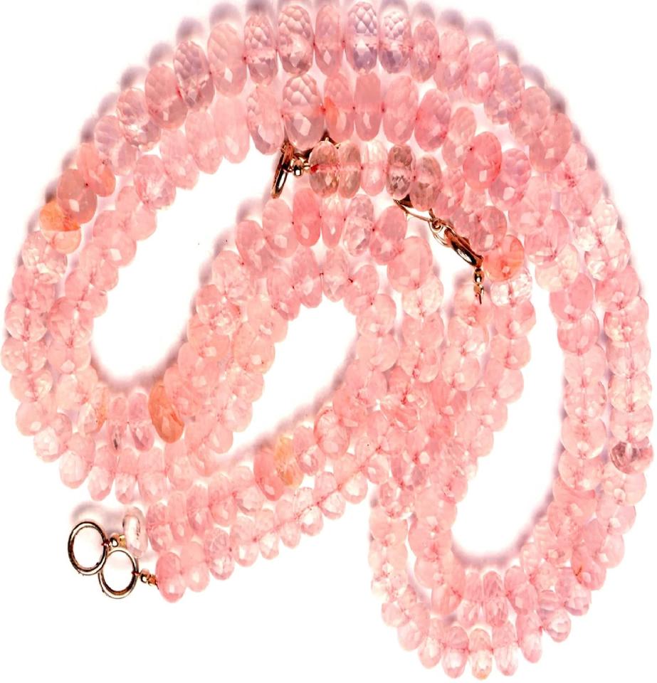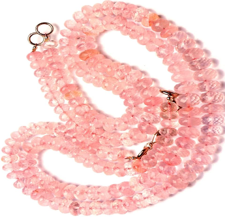 Collier de perles rondes à facettes en quartz rose naturel de 8 à 9mm plaqué or et rhodium pour les occasions de mariage chrétien