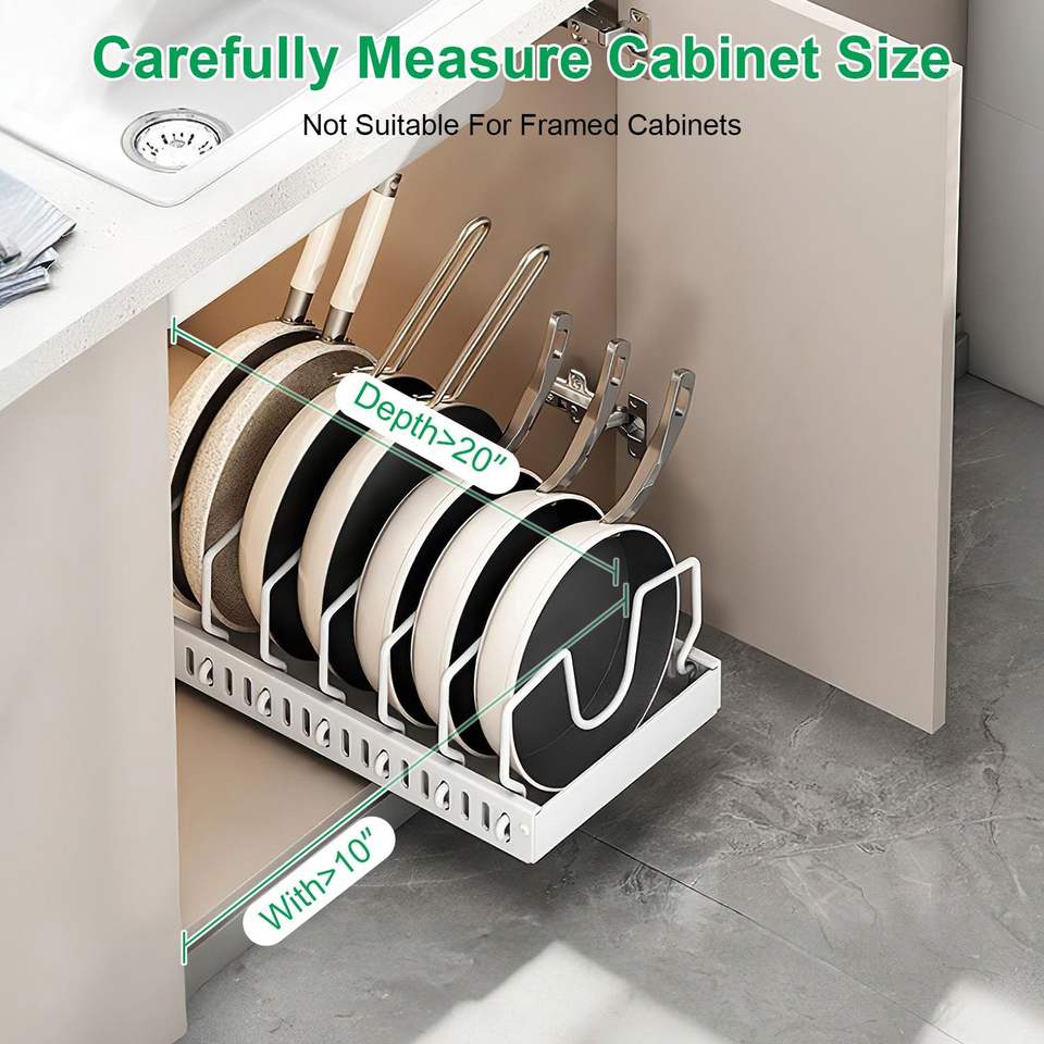 Organisateur de casseroles et poêles coulissant sous l'armoire, en acier au carbone antirouille, avec 8 séparateurs réglables, pour la cuisine