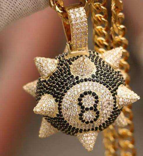 8 Ball Moissanite Charms VVS1 D Color Iced Effect Personalized 18K Yellow Gold IGI Certified Hip Hop Cartoon Design Gift Him