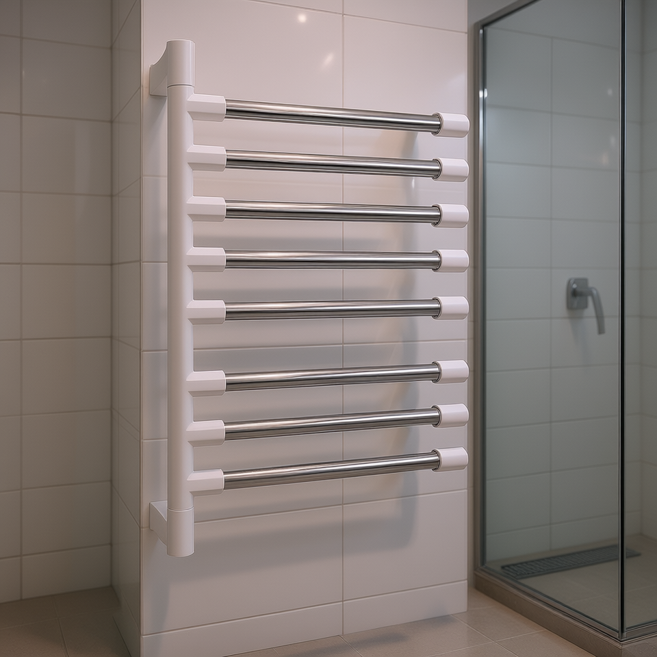 Porte-serviettes mural en acier inoxydable chromé On Teck Sa De Cv 8 Bar, accessoire de salle de bain au design minimaliste 11277