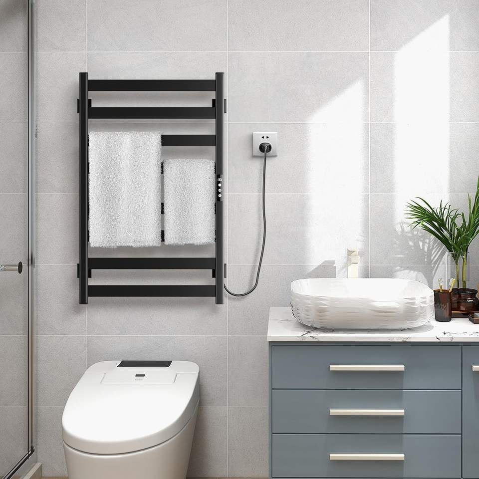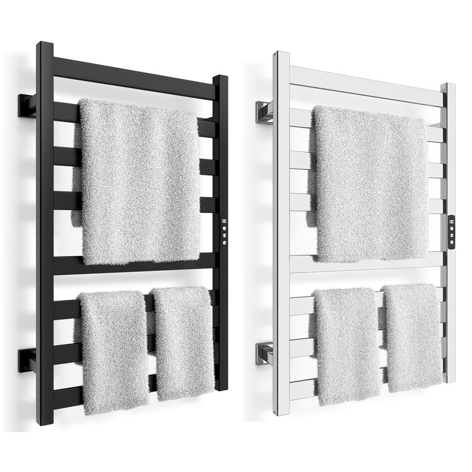 Sèche-serviettes chauffant à 8 barres en acier inoxydable pour salle de bain avec minuterie et contrôle de la température