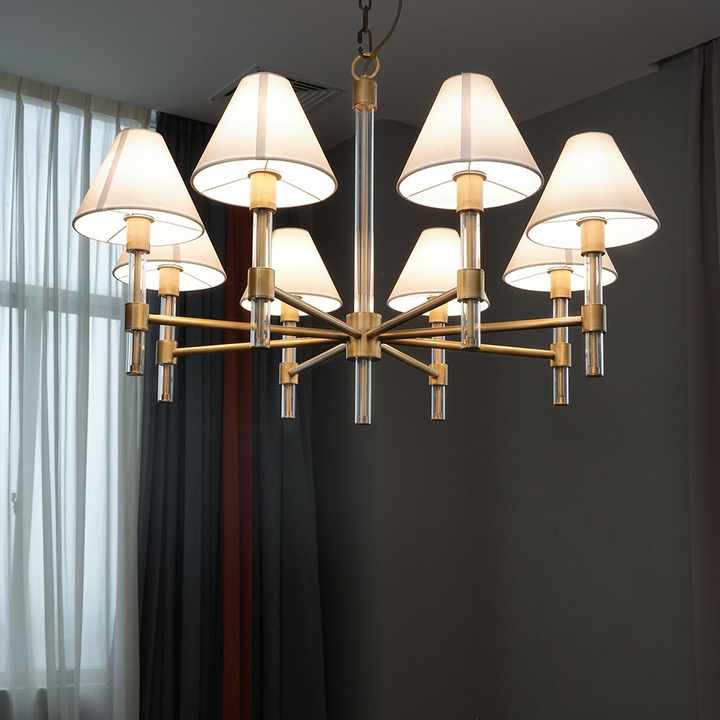 Lustre suspendu LED en laiton avec 8 ampoules, style nordique simple, en tissu, pour salon, chambre à coucher, décoration intérieure, lampe de plafond