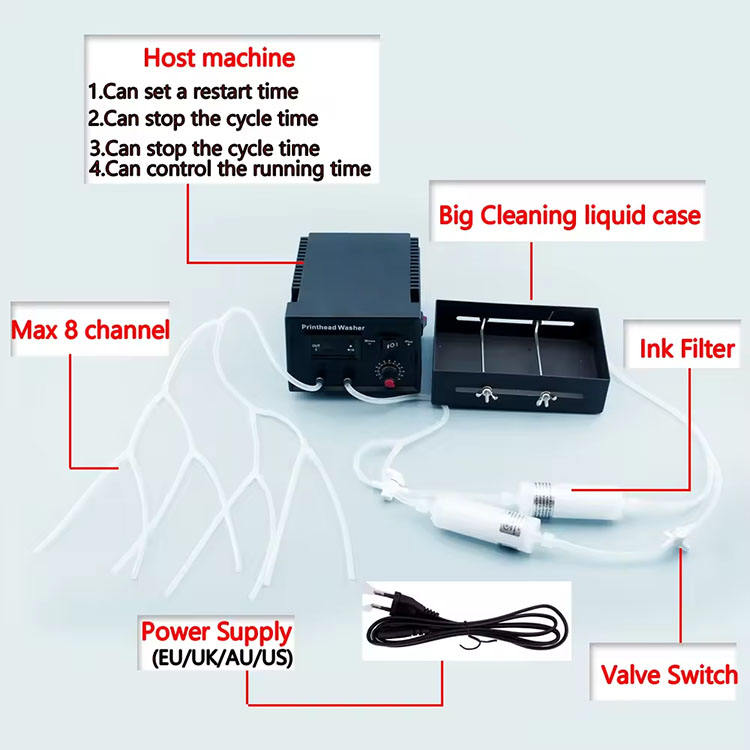 Laveuse de nettoyage de têtes d'impression 8 canaux, Kit de nettoyage de têtes d'impression