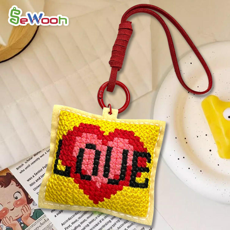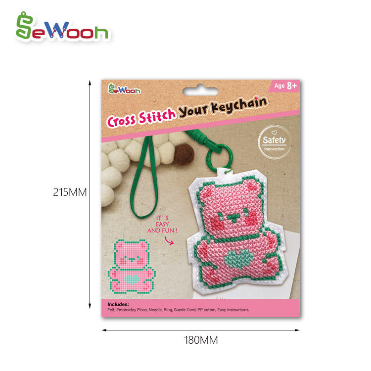 8 + enfants bricolage à la main en feutre de laine point de croix porte-clés couture et tissage jouet pour adultes