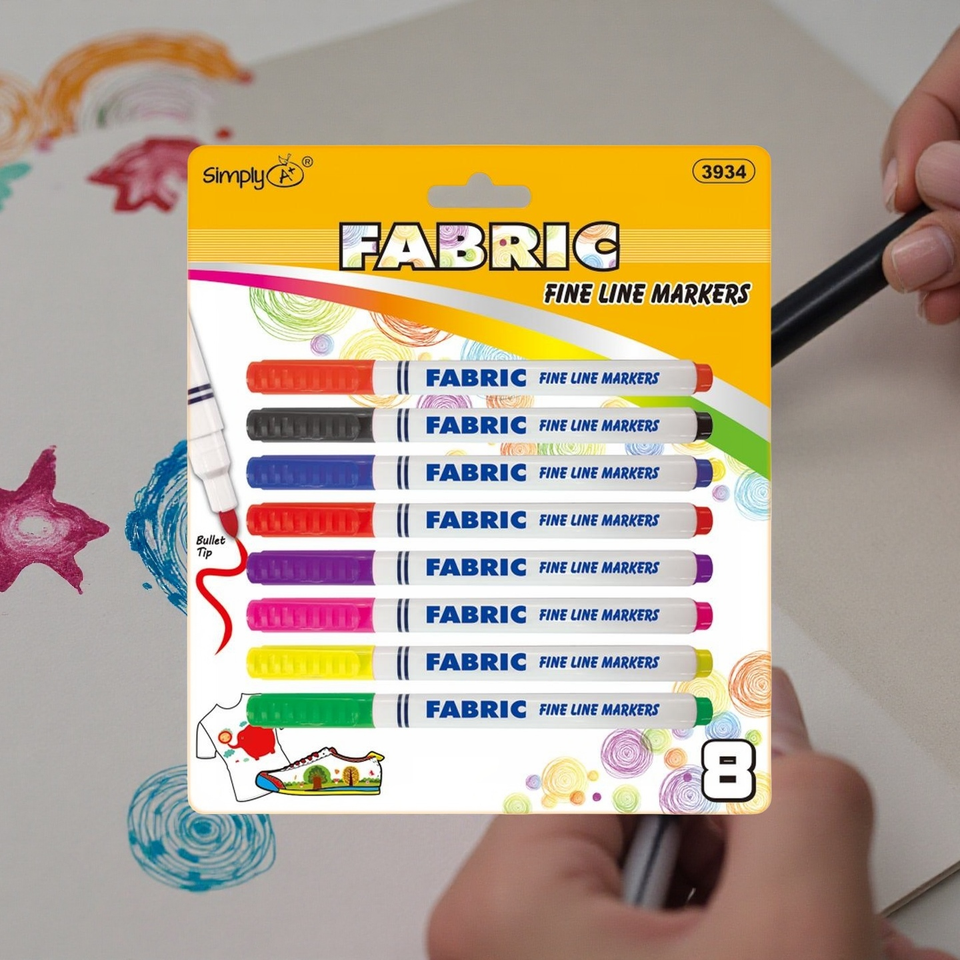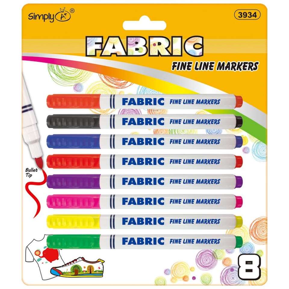 Ensemble de 8 couleurs Simplement 3934 marqueurs de lignes fines en tissu PLA Stylos textiles à encre permanente certifiés ASTM Papier moyen pour vêtements/toile