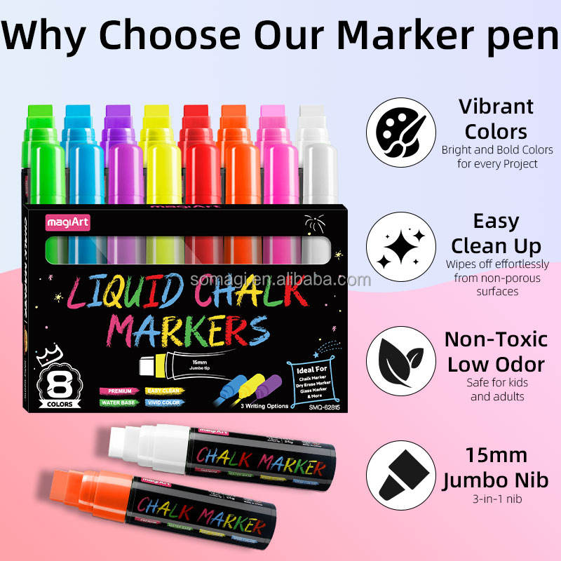 Marqueur liquide effaçable à sec 8 couleurs pour tableau blanc 15mm Marqueur liquide fluorescent pour tableau de menu noir