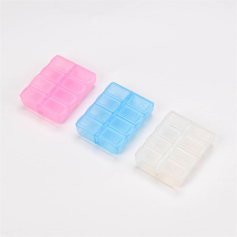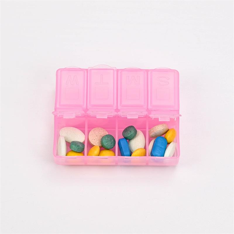 Boîte à pilules hebdomadaire en plastique PP à 8 compartiments de qualité alimentaire Boîte à pilules promotionnelle à double rangée à 4 compartiments 8 grilles