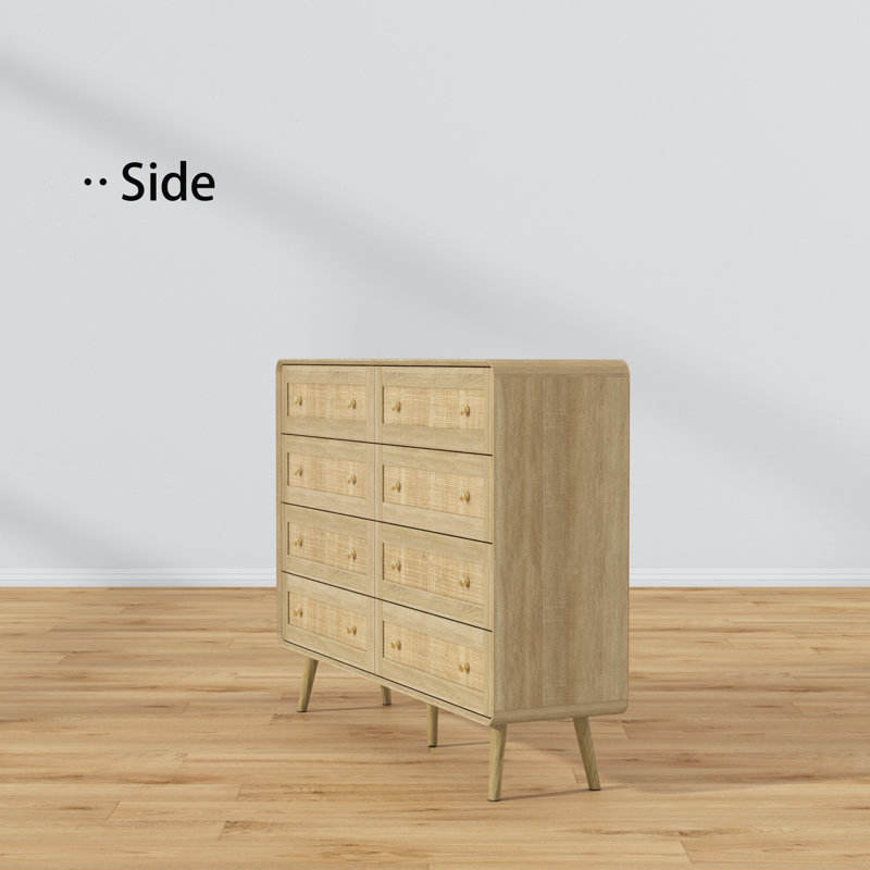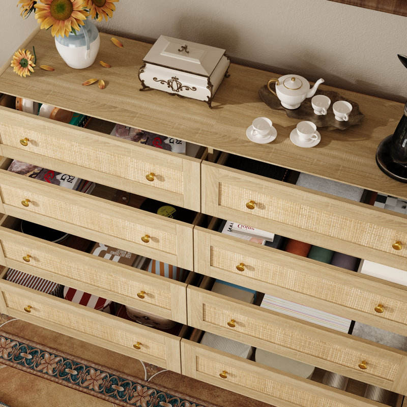 8-Drawer Rattan Weave Accent Chest with Round Corners for Storage and Organization