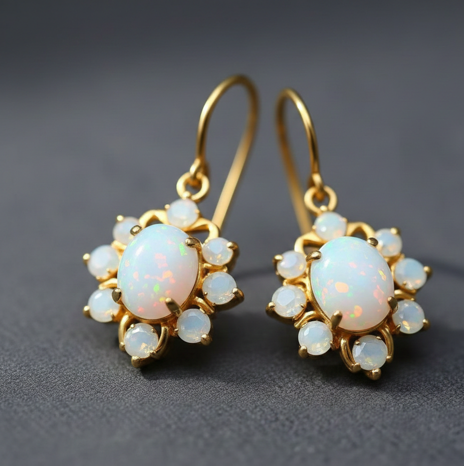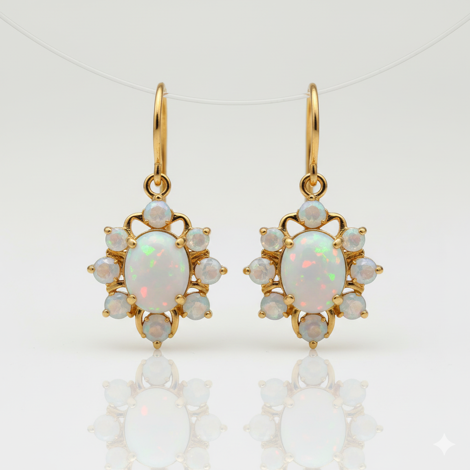 Nom du produit:Boucles d'oreilles 8 GM Opale & CZ| Opale ovale 8x10 avec CZ rond de 2 mm| 4 pouces