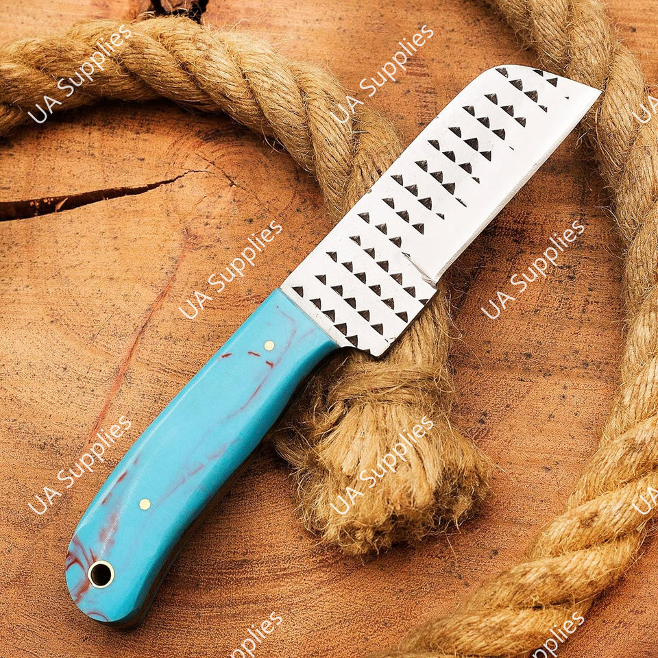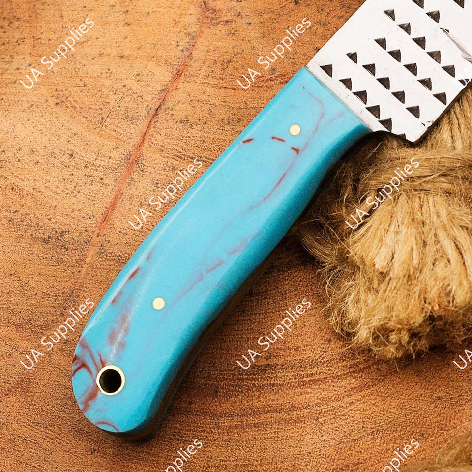 Couteau de chasse et de camping 8 pouces, fait main, en acier, avec lame pleine et manche en résine, à dos droit, pour cowboy, boucher de bœufs, vente en gros